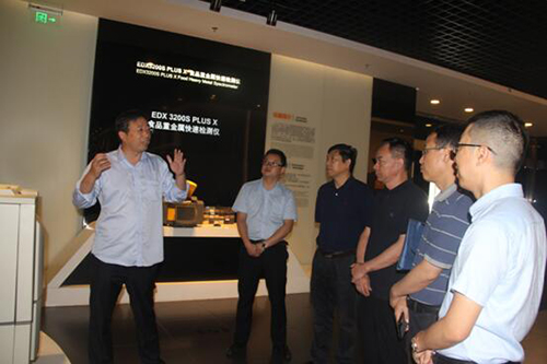 天瑞仪器总经理应刚带领来访专家参观天瑞仪器多媒体展示厅